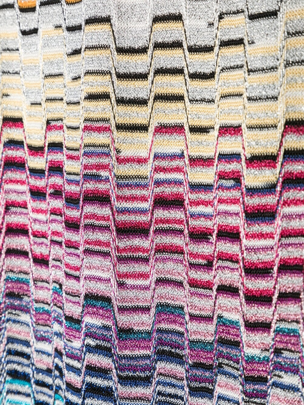 fringed edge knitted scarf from MISSONI featuring multicolour, knitted construction, patterned intarsia knit, signature zigzag woven design, fringed edge and rectangle shape. Striped scarf Size and Fit - LENGTH: 35.0 Centimetres. WIDTH: 180.0 Centimetres.