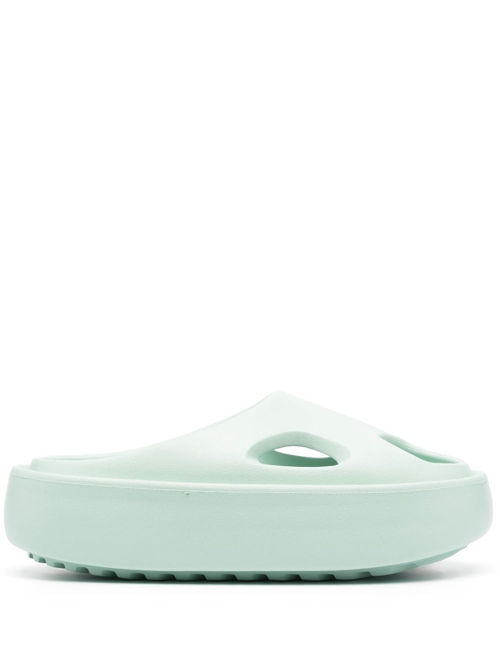Magma cut-out slides from AXEL ARIGATO featuring mint green, cut-out detailing, open toe, slip-on style, moulded footbed and flatform sole. We've partnered with Good On You — an independent agency that rates how brands perform in relation to their impact on the planet, people and animals, with a multi-criteria rating simplified to a five points scale. In order to be awarded our conscious label, larger brands need to score a minimum of four out of five ('Good'), while smaller brands must score at least three out of five ('It's A Start'). This item comes from a brand rated three out of five ('It's A Start') by Good on You. Please note, this is a brand-level rating and does not guarantee that this product is made with conscious materials.. Learn more about what makes a product Conscious on our Conscious Criteria page. infradito, platform Magma platform sandals Size and Fit - Heel 1,8 in / 4,5 cm; Platform 1,6 in / 4 cm
