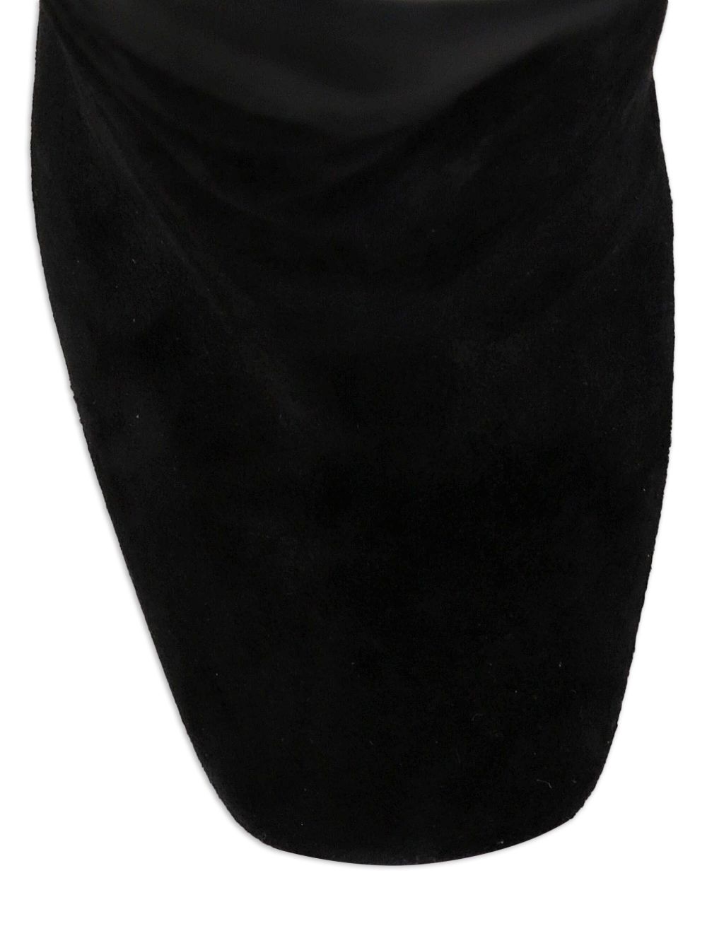 black suede leather block heel chain detail pointed toe knee-high shaft Suede leather boots