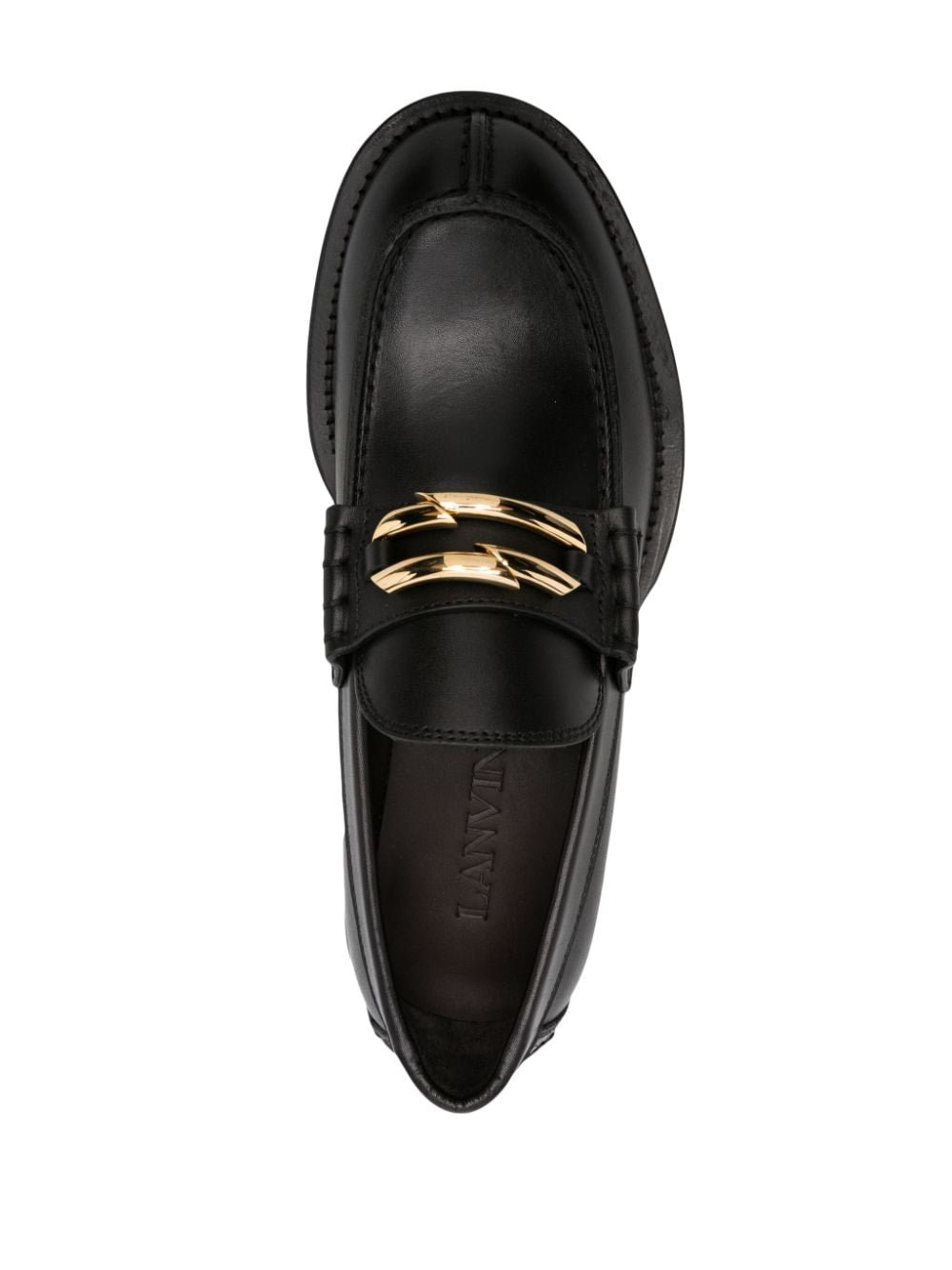 buckled leather loafers from Lanvin featuring black, calf leather, gold-tone hardware, decorative buckle detail, apron toe, branded leather insole, low block heel and rubber outsole. Medley leather loafers Size and Fit - Heel 1,6 in / 4 cm; Platform 0,6 in / 1,5 cm