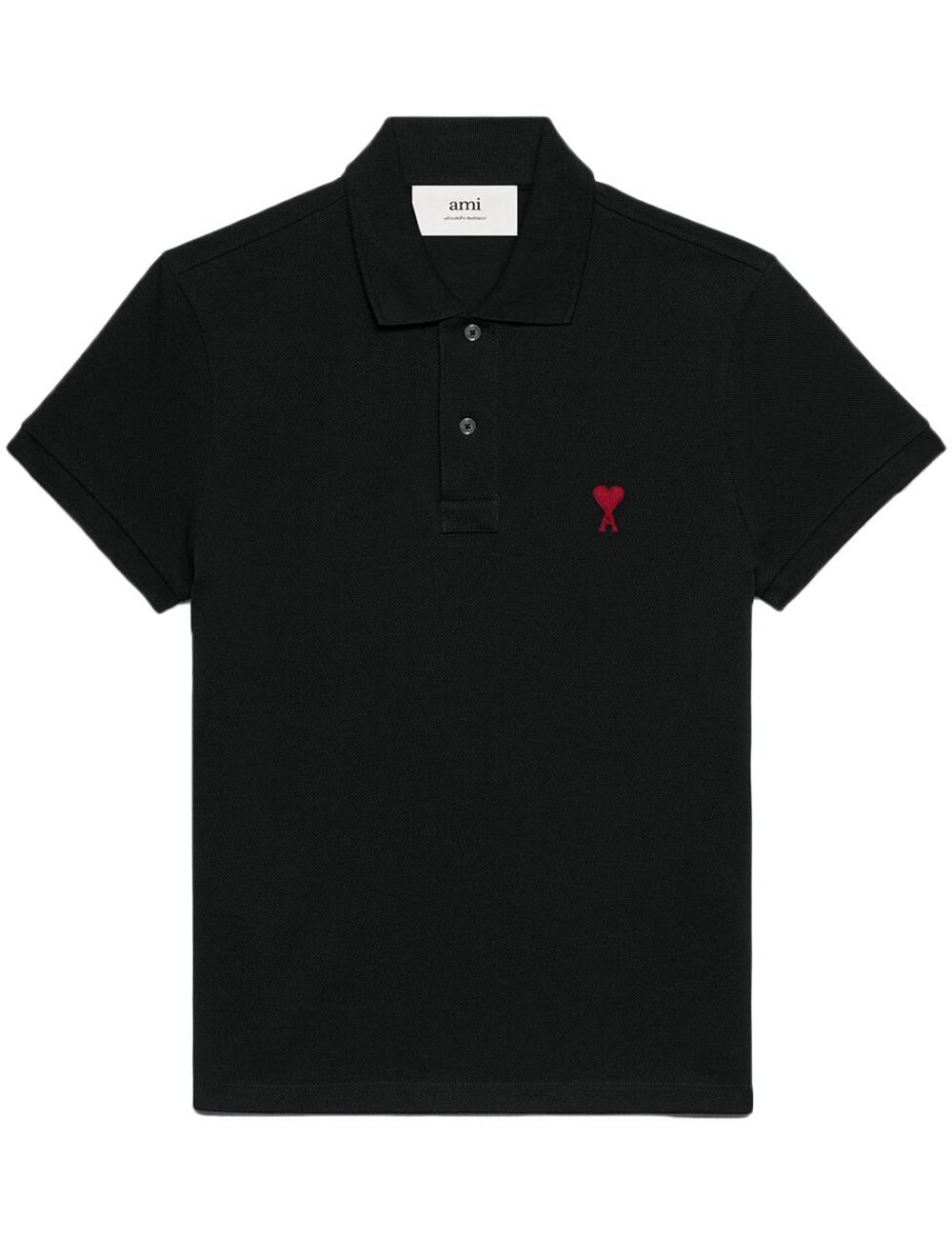 Ami Paris Black Polo EmbroideredChestLogo Detail Edition
