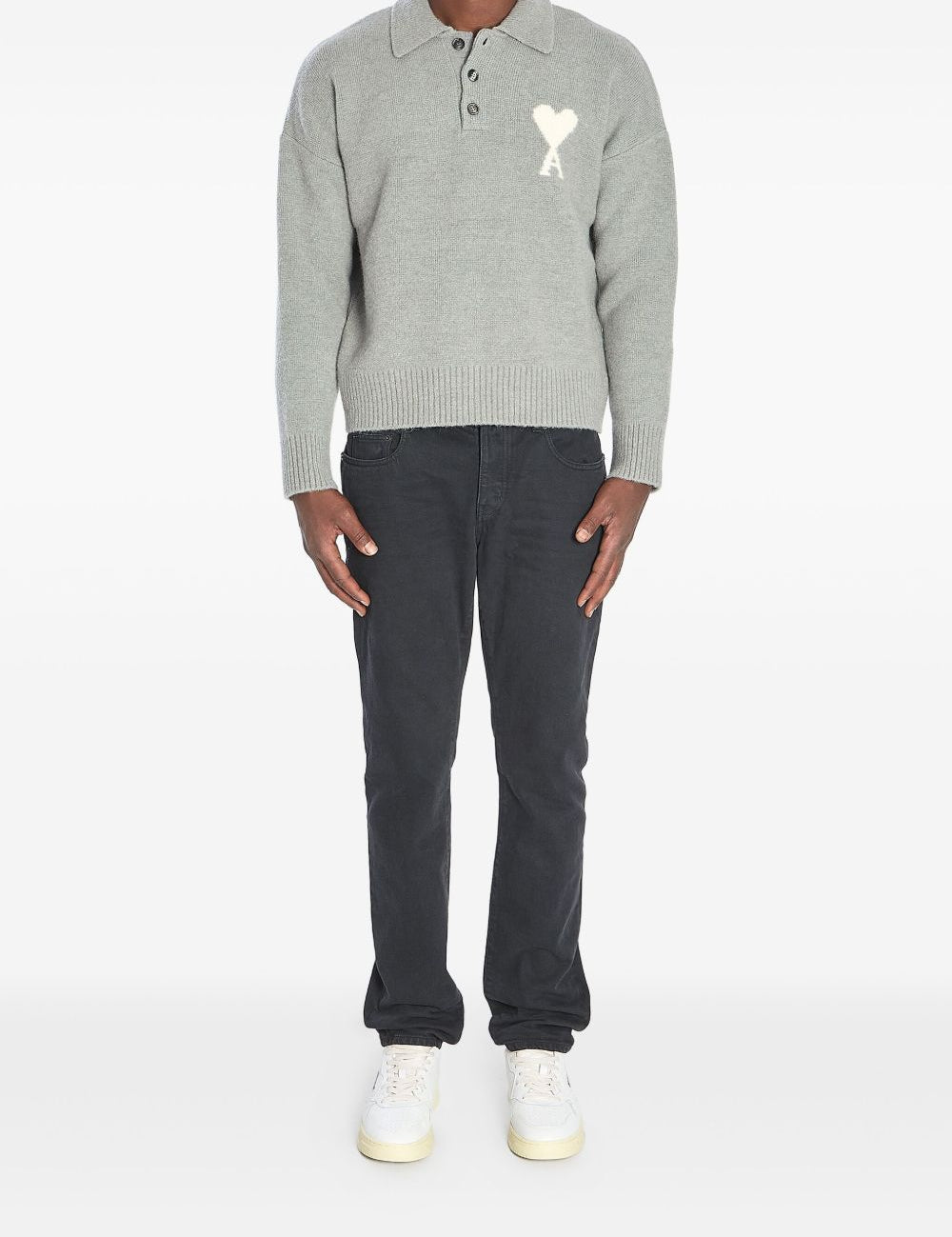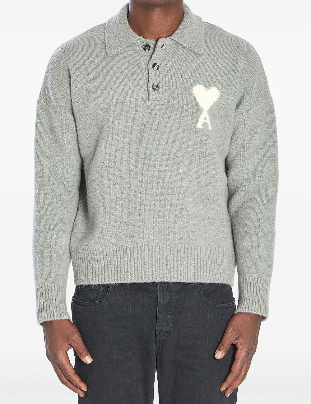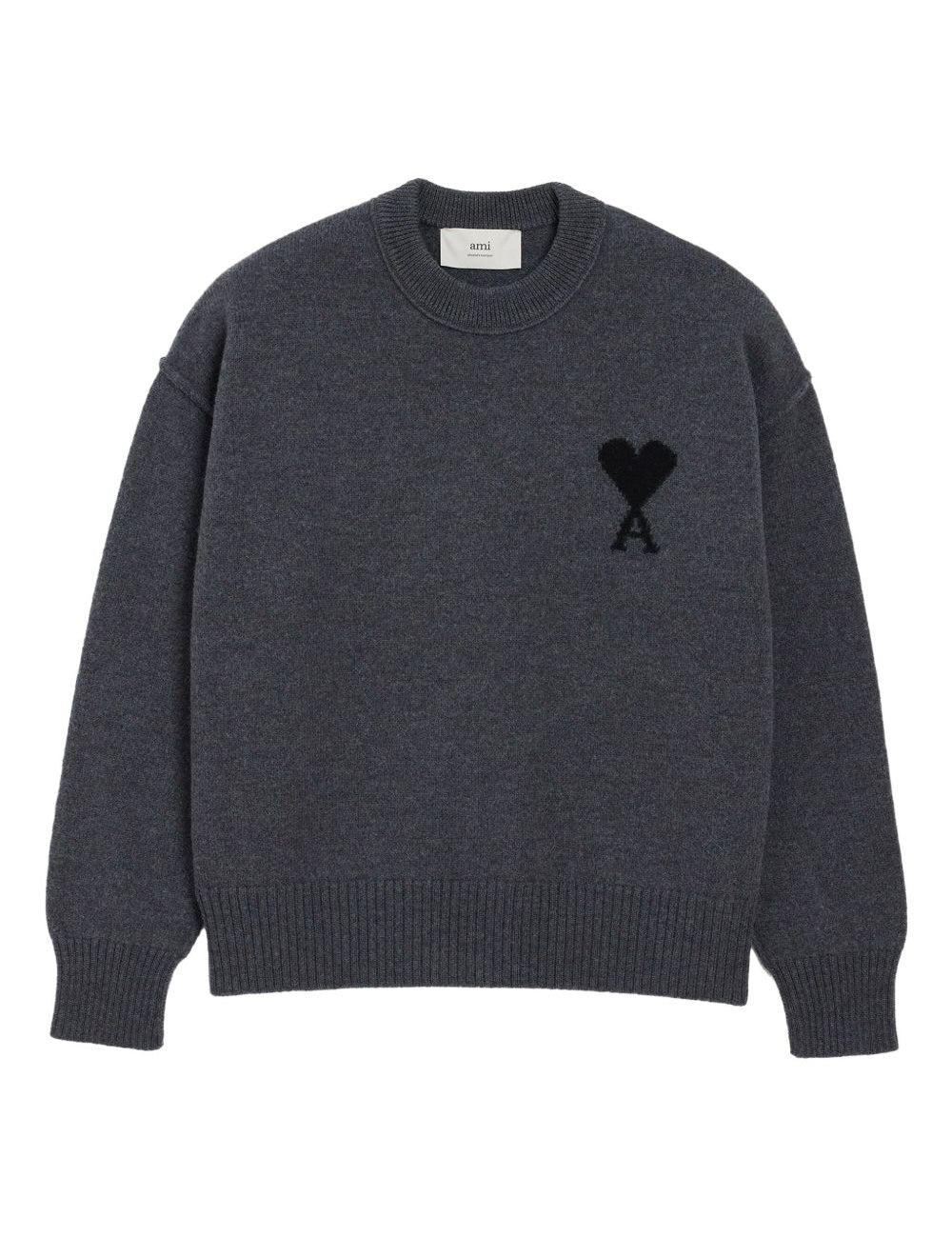 Ami Paris Grey Intarsia LogotypeDetail Architectural Sweater
