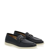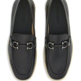 black calf leather Gancini plaque almond toe branded leather insole flat rubber sole Gancini leather loafers