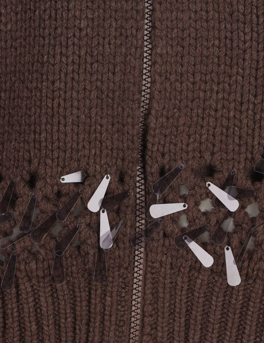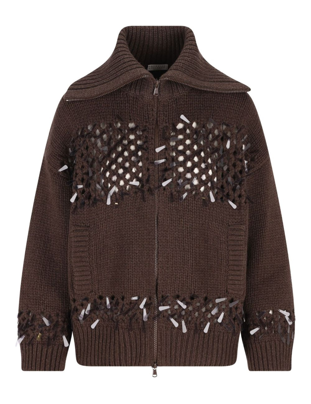 Brunello Cucinelli Brown Paillette Zip Closure Cardigan