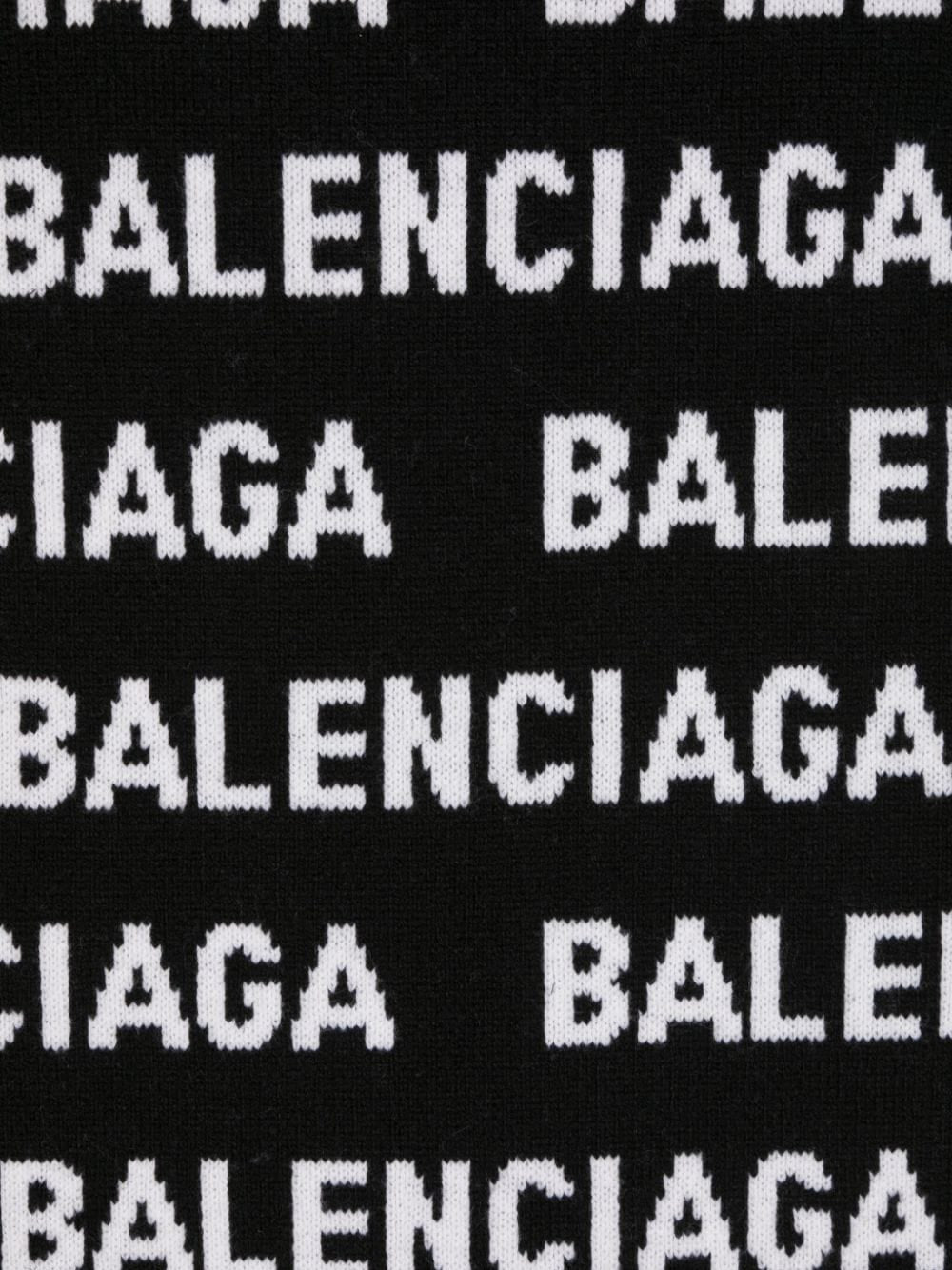 intarsia-knit wool-blend scarf from BALENCIAGA featuring black/white, wool blend, two-tone design, intarsia knit and finished edge. We've partnered with Good On You — an independent agency that rates how brands perform in relation to their impact on the planet, people and animals, with a multi-criteria rating simplified to a five points scale. In order to be awarded our conscious label, larger brands need to score a minimum of four out of five ('Good'), while smaller brands must score at least three out of five ('It's a start'). This item comes from a brand rated four out of five ('Good') by Good on You. Please note, this is a brand-level rating and does not guarantee that this product is made with conscious materials.. Learn more about what makes a product Conscious on our Conscious Criteria page. Allover logo wool scarf
