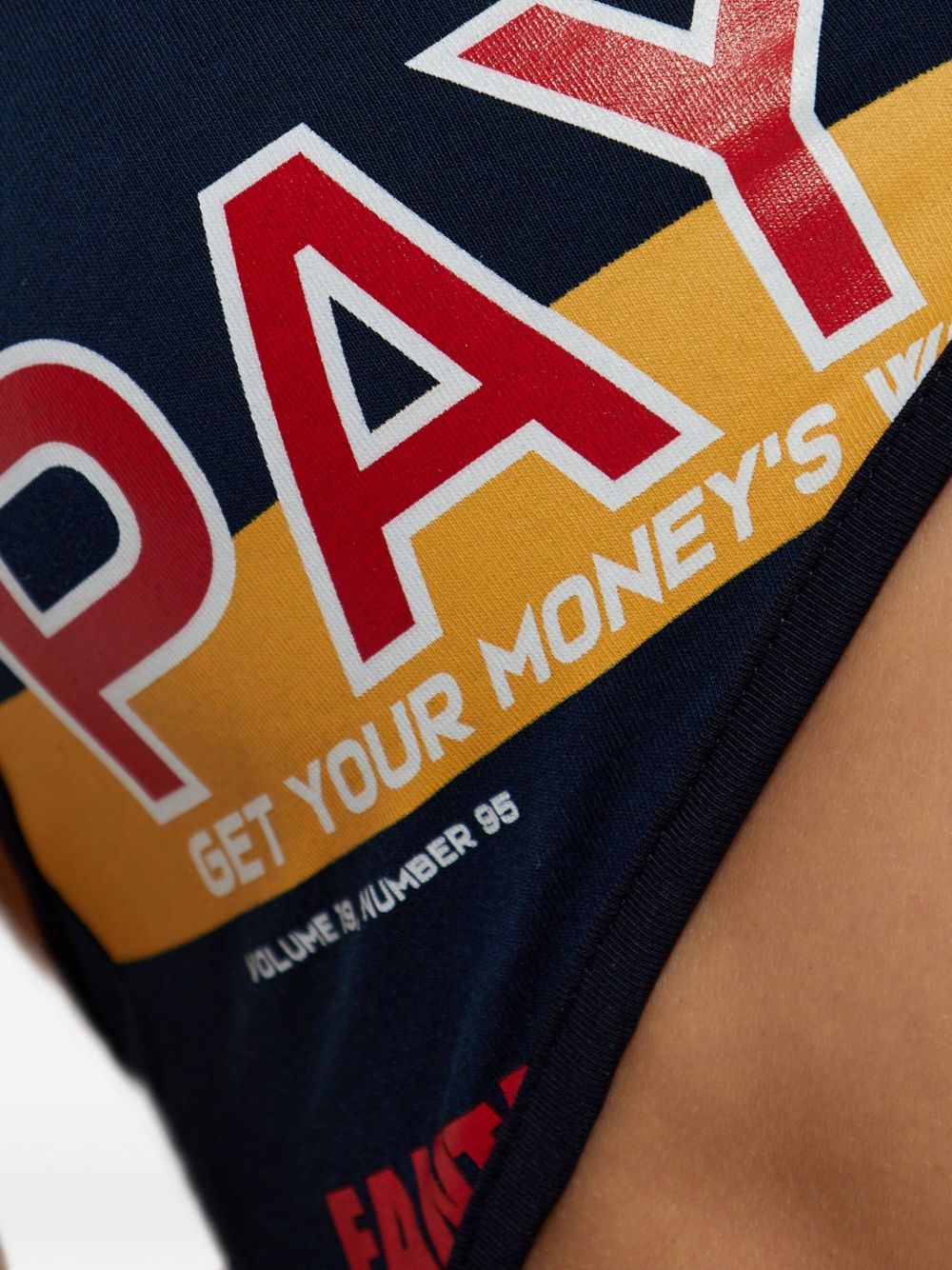 dark blue/multicolour slogan print cut-out detail adjustable spaghetti straps clasp fastening high-cut legs cotton Printed bodysuit