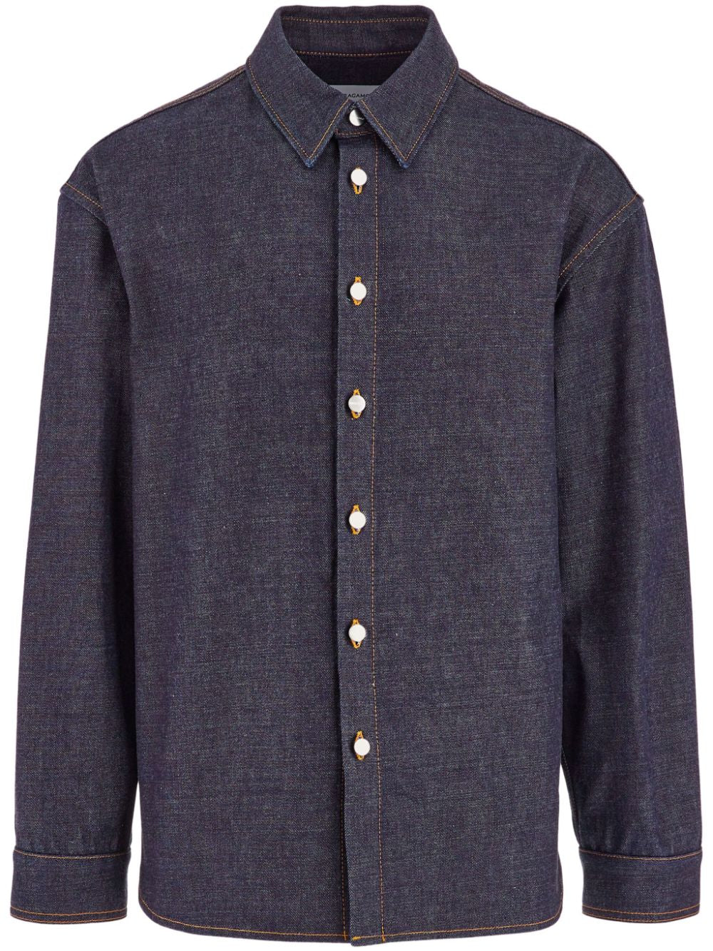 Una silhouette classica dalle proporzioni contemporanee, camicia sportiva in denim di puro cotone lavato, Le linee sono morbide, ma pulite, con spalla scesa, colletto alto a punta e bottoni a chiodo in metallo lungo l'abbottonatura, Da notare i polsini c Cotton shirt Size and Fit - This piece fits true to size. We recommend you get your regular size. Model is 1,84m / 6ft 1in wearing size 48 (IT)
