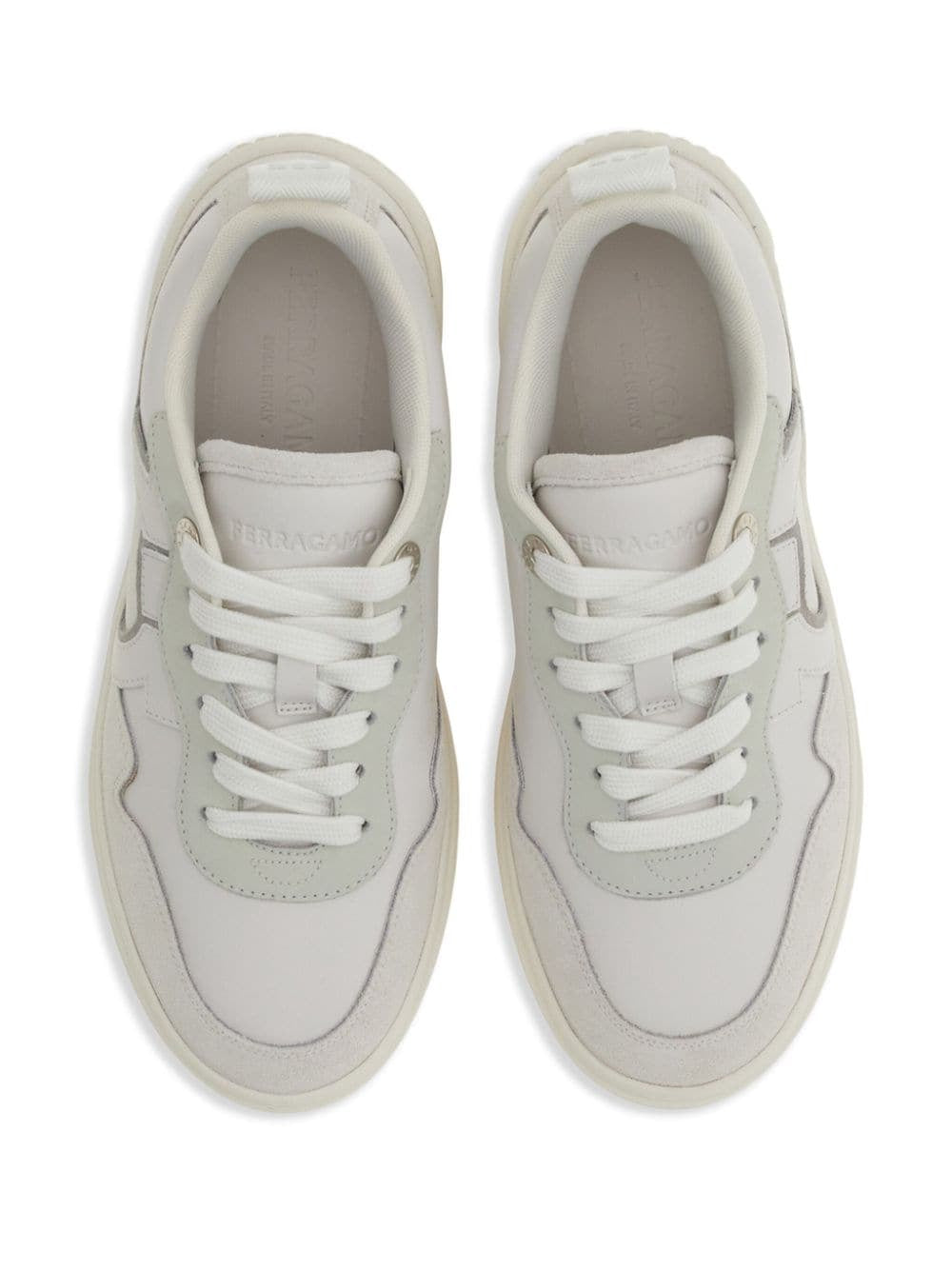 optical white leather Gancini print logo patch to the side suede panelling pull-tab at the heel embossed logo to the rear logo-debossed tongue round toe front lace-up fastening branded leather insole flat rubber sole Gancini leather sneakers Size and Fit - Our boutique offers the following fittings: M (medium) for sporty women shoes and C (wide) for classic women shoes. Do not hesitate to contact us to have more information.