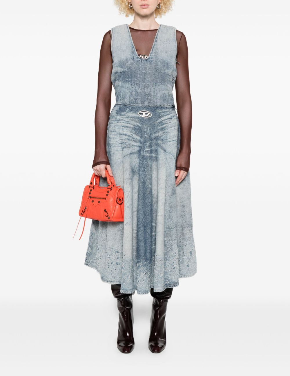 Diesel UltraExclusive Blue Distressed Logo Plaque Skirt