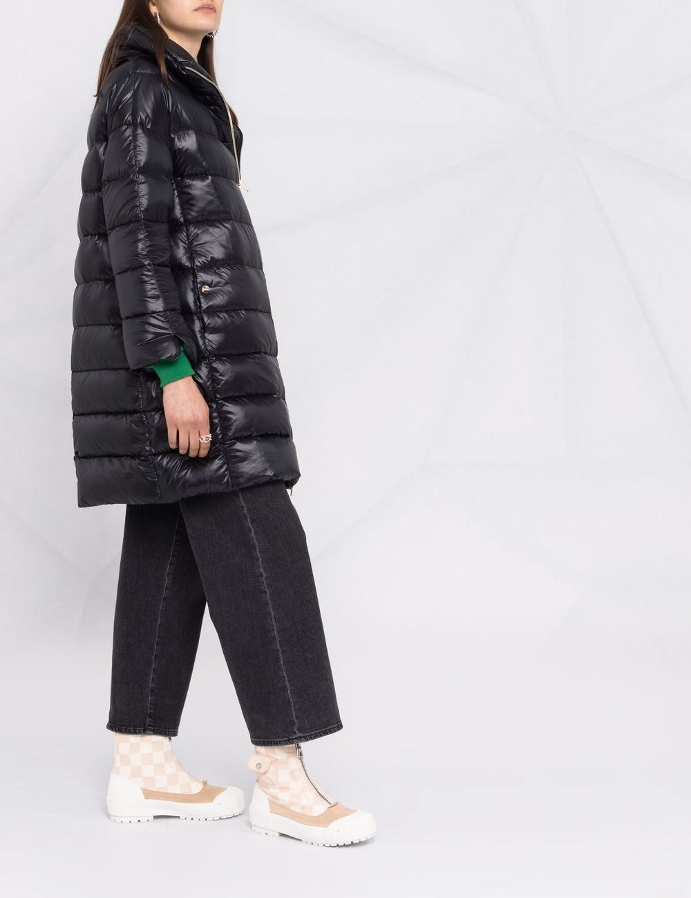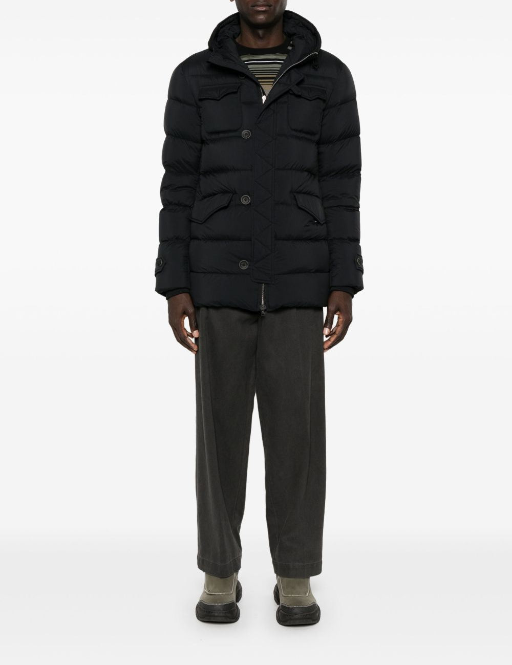 Herno Black Cape Detailing Quilted Premium Overcoat