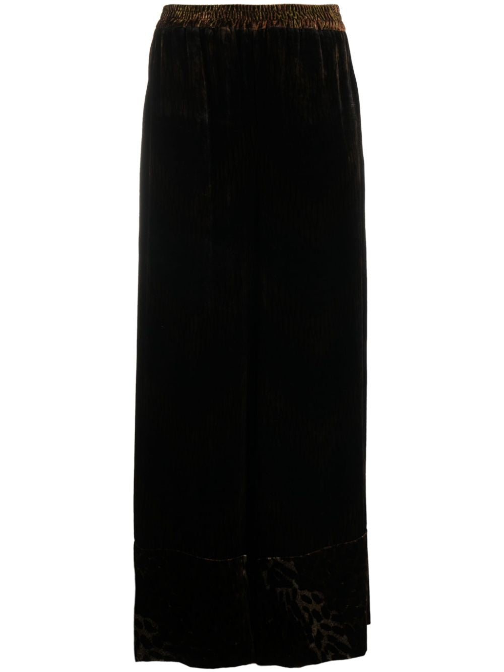 dark green velvet leopard print wide leg elasticated waistband two side inset pockets Silk printed trousers