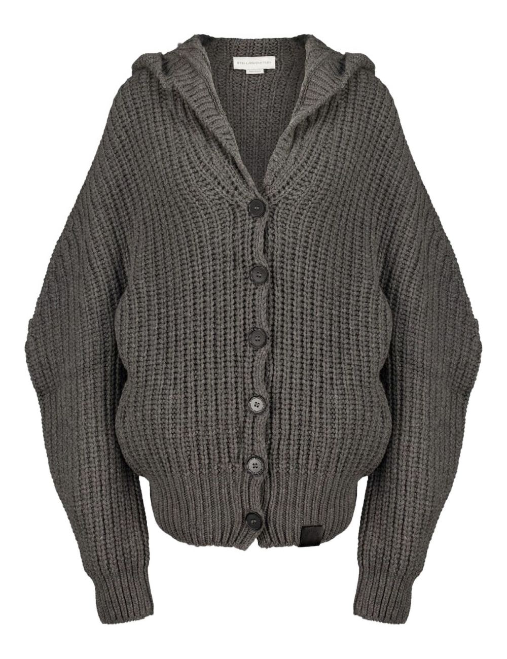 Stella McCartney Grey Ribbed Hooded Buttoned Sweater