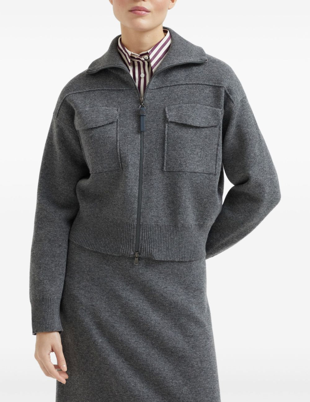 Brunello Cucinelli Charcoal Flap Pocket Cardigan