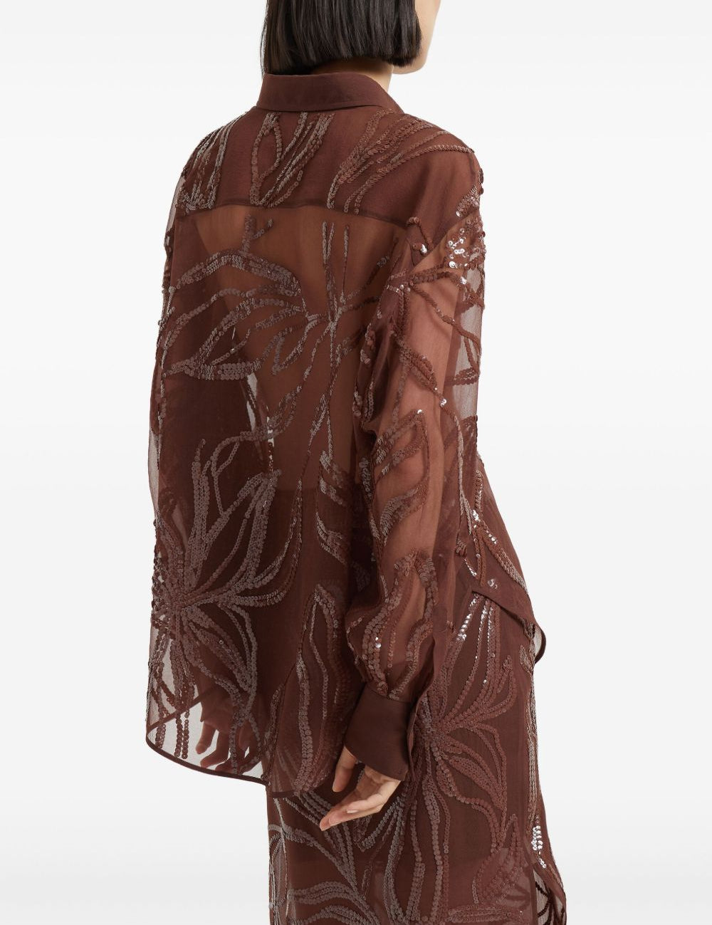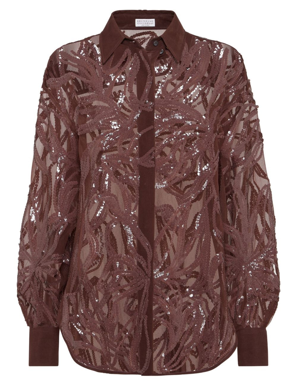 Brunello Cucinelli Brown Floral Embroidery Shirt