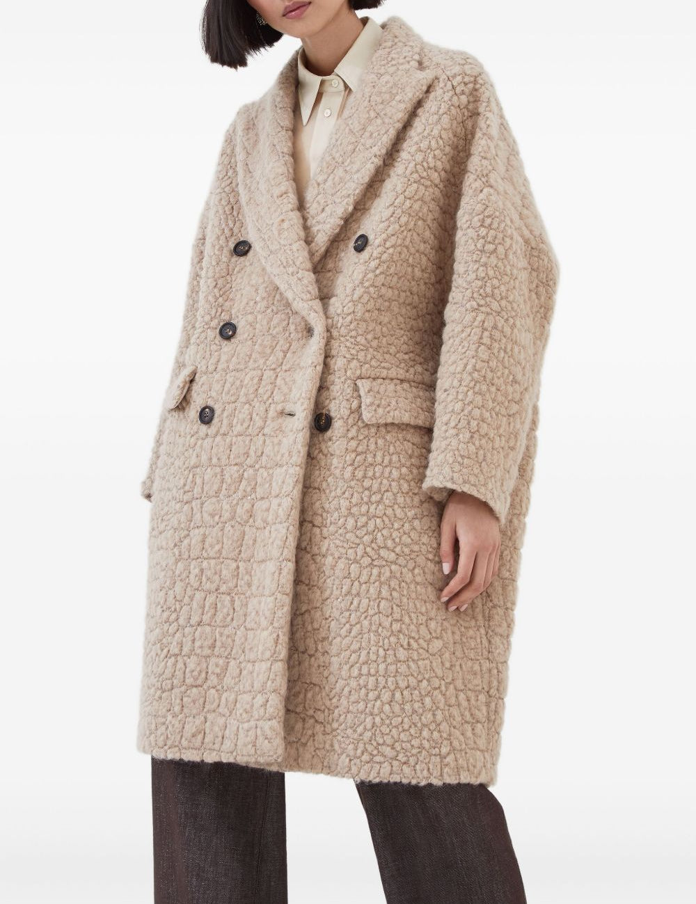 Brunello Cucinelli Camel Crocodile Motif Coat
