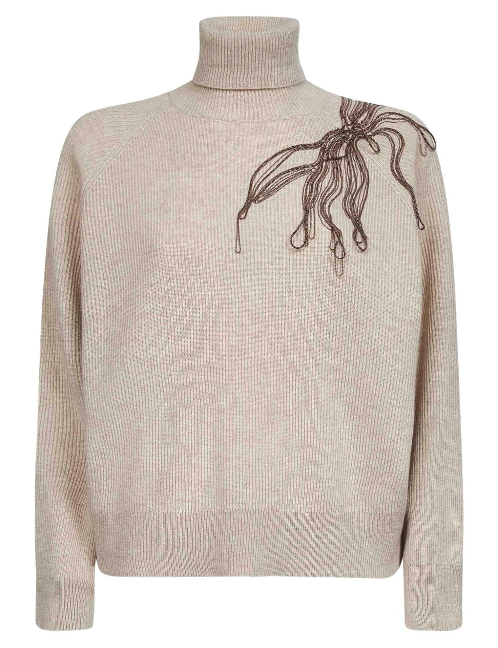Brunello Cucinelli Beige Monili Embroidery Jumper