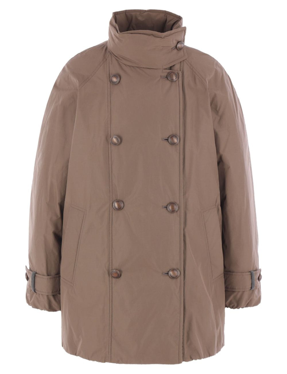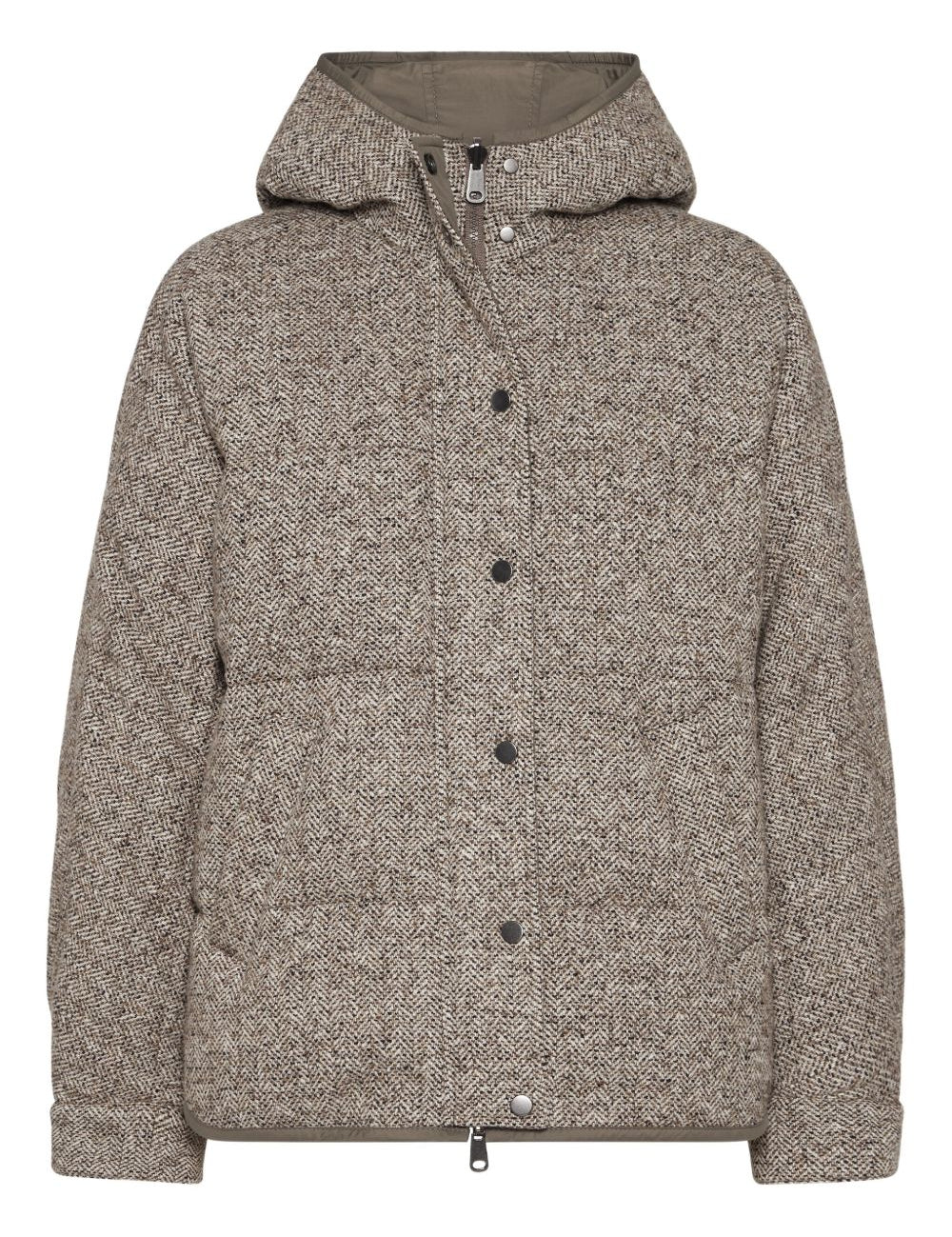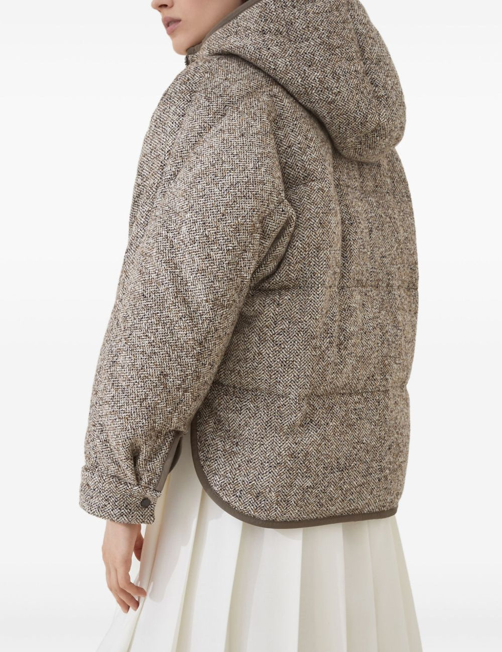 Brunello Cucinelli Taupe Chevron Hooded Jacket