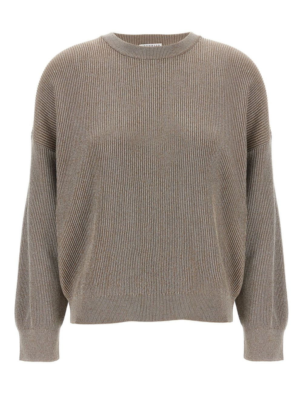 Brunello Cucinelli Beige Ribbed Knit Sweater