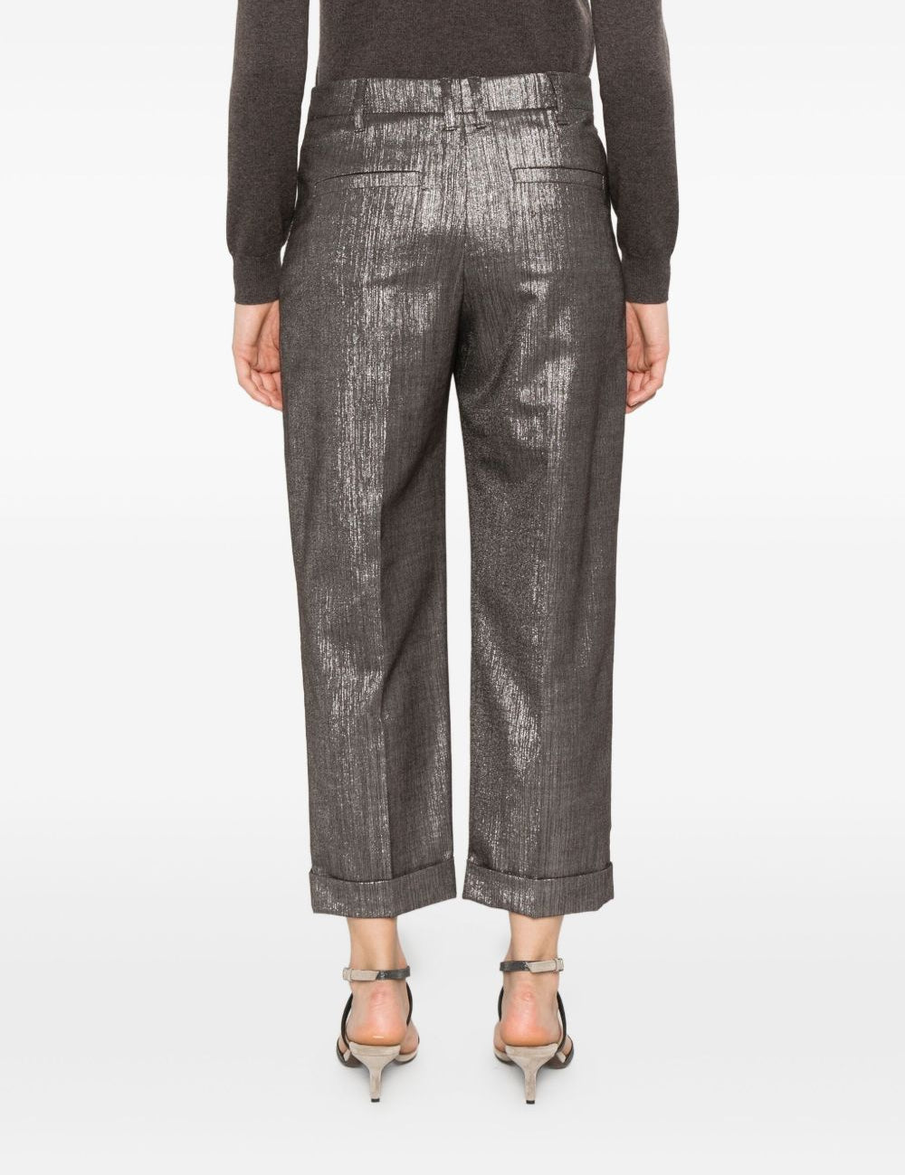 Brunello Cucinelli Brown Metallic Pleat Trousers