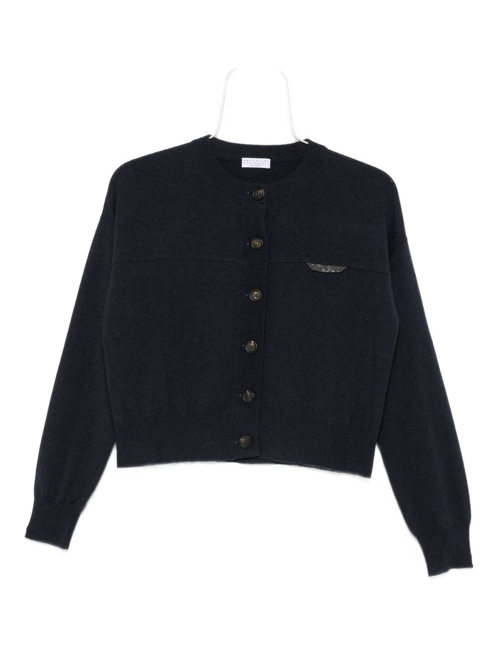 Brunello Cucinelli Navy Ribbed Cashmere Cardigan