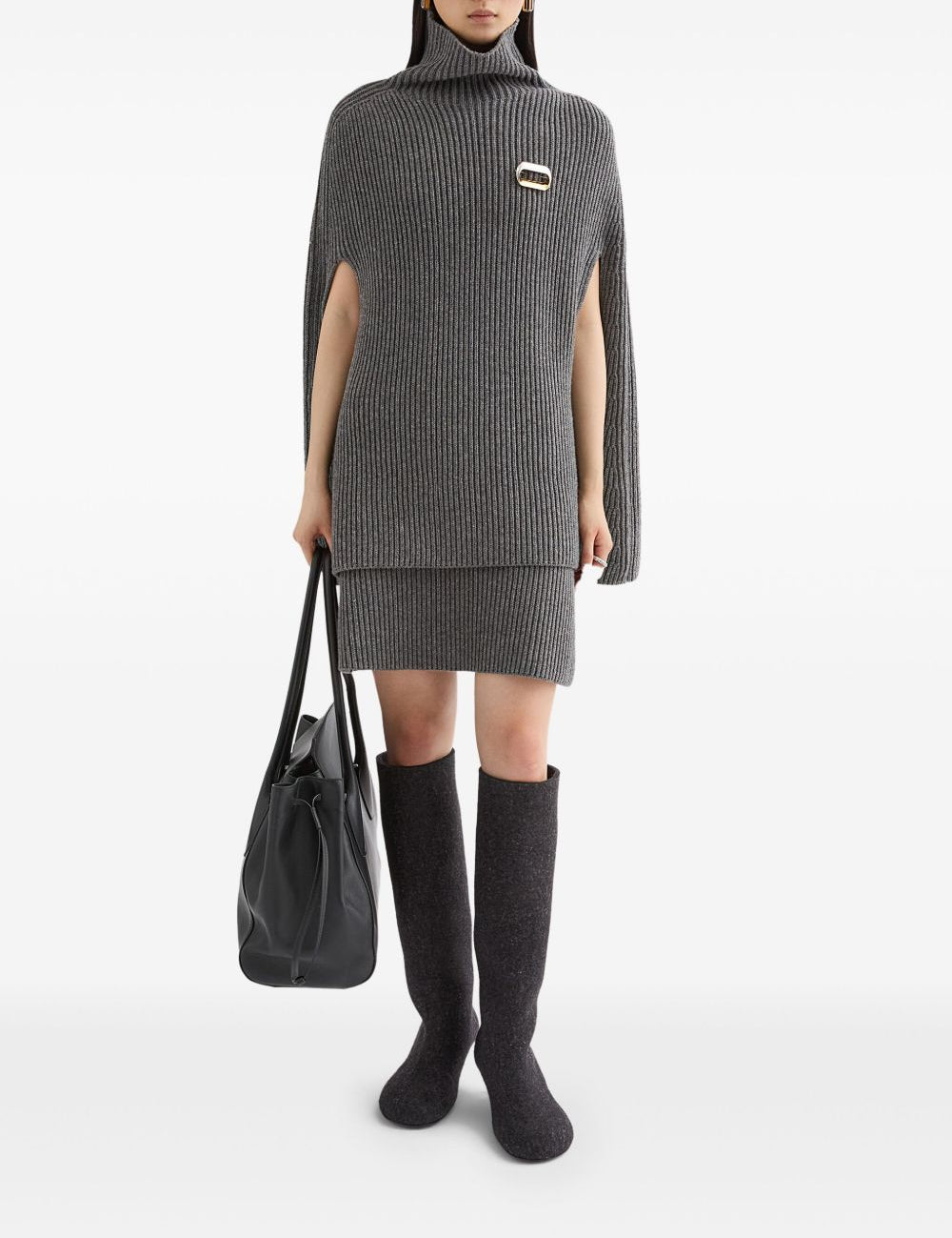 Jil Sander Grey Ribbed Skirt