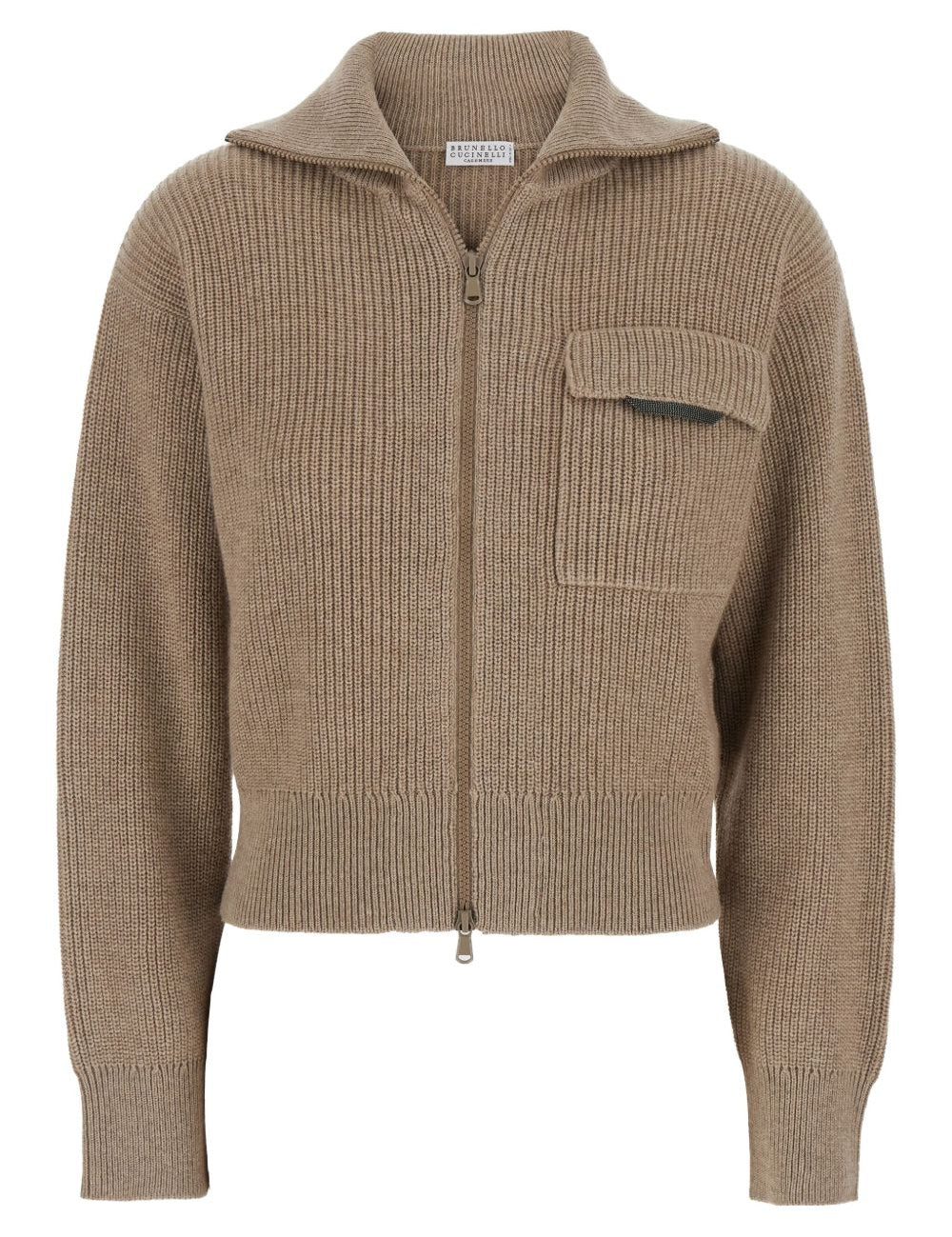 Brunello Cucinelli Beige Zip Up Cardigan