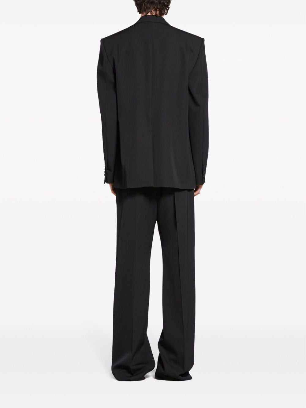 single-breasted wool blazer from BALENCIAGA featuring black, wool, notched lapels, shoulder pads, long sleeves, buttoned cuffs, front button fastening, chest welt pocket, two side flap pockets and straight hem. Wool single-breasted blazer jacket Size and Fit - This piece fits true to size. We recommend you get your regular size. Model is 1,84m / 6ft 1in wearing size M