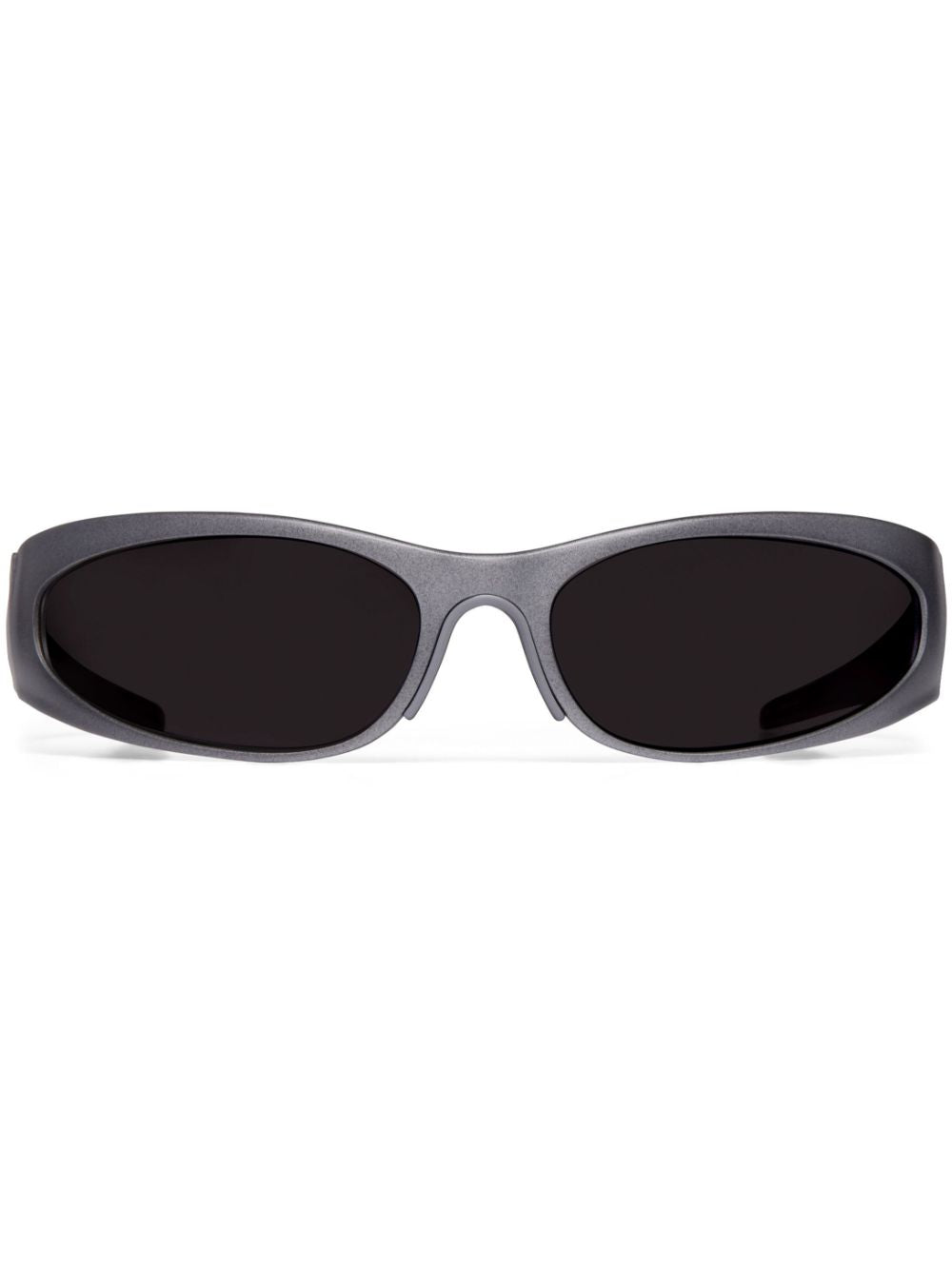 oval-frame sunglasses from BALENCIAGA EYEWEAR featuring dark grey, metal, tinted lenses and curved arms. These glasses come with a protective case.. We've partnered with Good On You — an independent agency that rates how brands perform in relation to their impact on the planet, people and animals, with a multi-criteria rating simplified to a five points scale. In order to be awarded our conscious label, larger brands need to score a minimum of four out of five ('Good'), while smaller brands must score at least three out of five ('It's a start'). This item comes from a brand rated four out of five ('Good') by Good on You. Please note, this is a brand-level rating and does not guarantee that this product is made with conscious materials.. Sunglasses