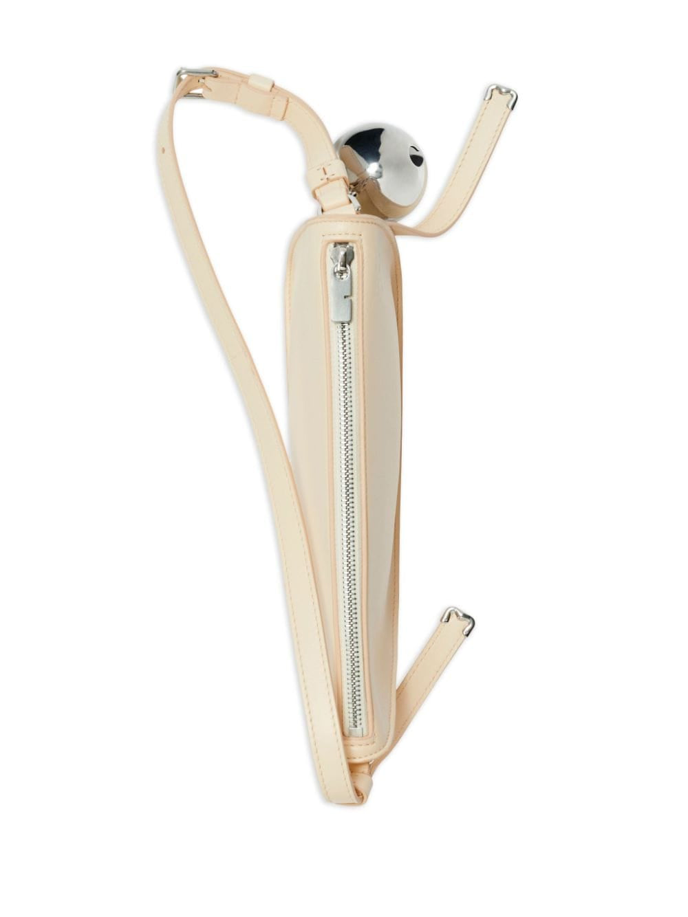 light beige lambskin signature Equestrian Knight motif silver-tone hardware bell charm top zip fastening adjustable shoulder strap main compartment Shield mini leather shoulder bag Size and Fit - Width 10,24 in / 26 cm Height 5,31 in / 13,5 cm Depth 2,17 in / 5,5 cm Handle 9,84 in / 25 cm