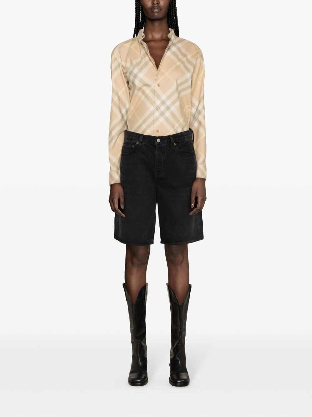 light beige/white/brown cotton twill weave Vintage Check pattern button-down collar front button fastening long sleeves buttoned cuffs embroidered logo at the chest curved hem Check motif cotton shirt Size and Fit - This piece fits true to size. We recommend you get your regular size. Model is 1,75m / 5ft 8in wearing size 8 (UK)